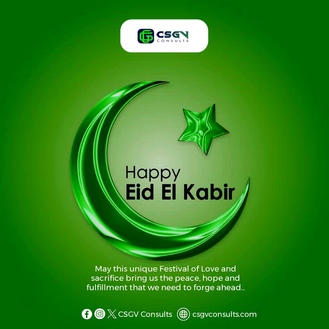 Eid Mubarak from CSGV Consults!🎉🎊 May your sacrifices be rewarded and your businesses flourish like the blessings of this holy day. May this Eid bring you and your family abundant blessings. 🙏💯 We're here to support your business goals 🫂. Let's chat about how we can help!...