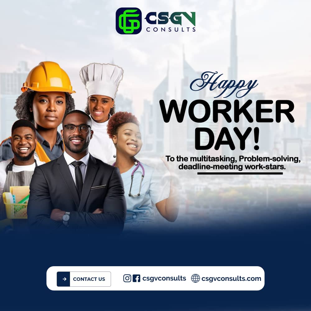 Happy New Month & Happy Worker's Day! May this month bring forth abundant opportunities for our business to flourish. May your hard work be met with rewarding results. This May, empower your business dreams with CSGV Consults . We provide a comprehensive suite of services to get your venture off the ground, including: All CAC Registrations (Business Name, Company, NGO Registration) TIN...